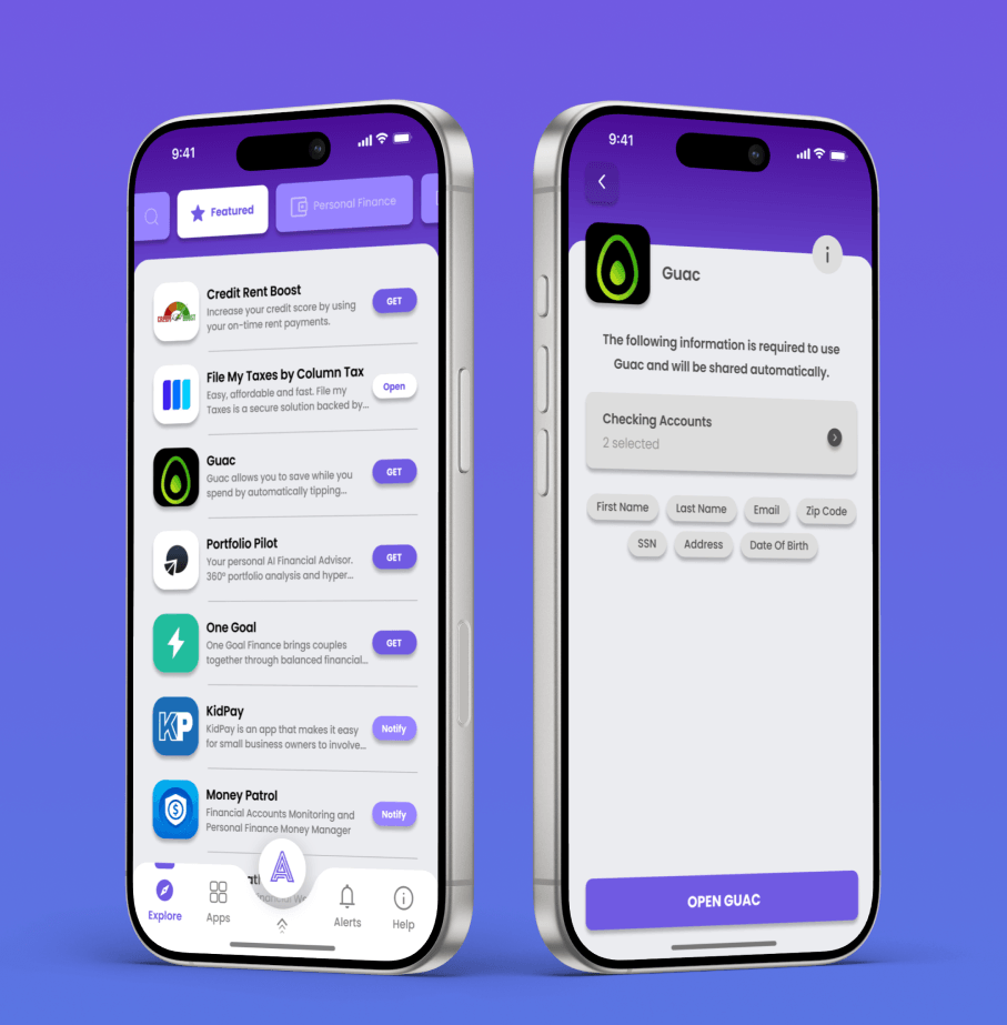 We partner with forward-thinking banks and credit unions to turn their digital banking apps into a gateway for the latest fintech. Our FI partners maintain the primary relationship while offering their members world-class tools.